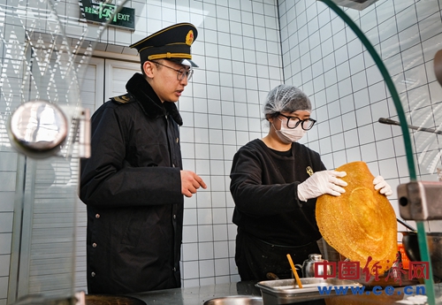 2月1日,监视员对管辖坐区食物运营商户、餐车、快餐配送等单元的原料储存、食物加工、温控设备运转情况、收集订餐及食物从业人员上岗证件等环节环节进行监视查抄。